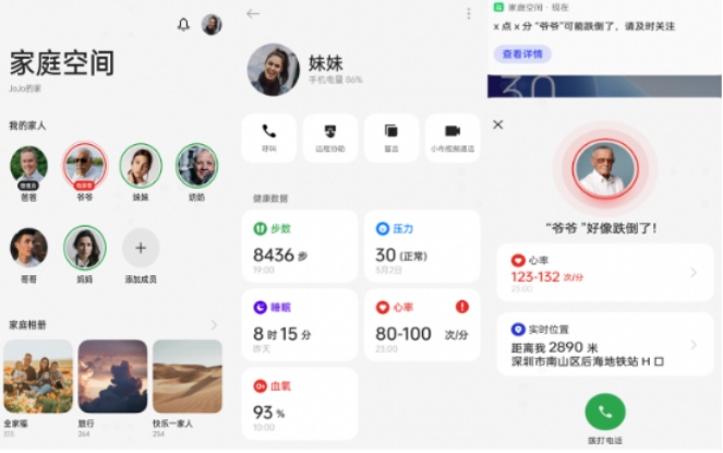 通過ColorOS系統(tǒng),聯(lián)動手機和手表等硬件設備,實現(xiàn)家庭成員的健康數(shù)據(jù)同步。用戶能夠在ColorOS家庭空間中實時查看家人的健康指標,包括心率、血氧飽和度、睡眠時長等;如果家人數(shù)據(jù)異常或被檢測到可能跌倒,其他成員會在第一時間收到提醒,方便及時救援。