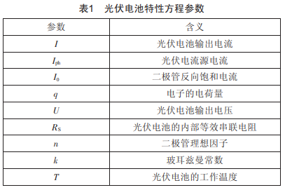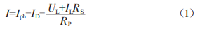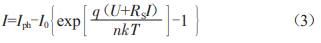 在圖1所示的光伏電池等效電路中,串聯(lián)電阻Rs較小,并聯(lián)電阻RP較大且大于串聯(lián)電阻Rs,對于理想光伏電池可忽略RP的影響,所以式(1)可簡化為: