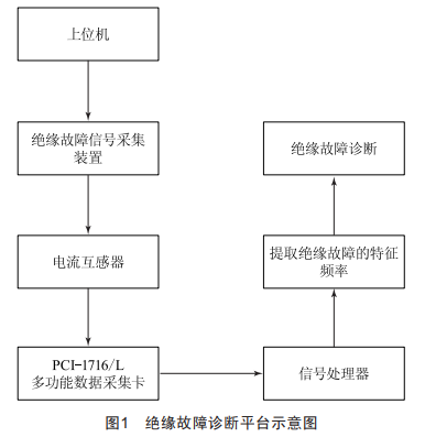 為了驗證文中技術(shù)在電氣系統(tǒng)絕緣故障診斷中的可行性,在Linux系統(tǒng)下,搭建了絕緣故障診斷平臺,主要由電流互感器、絕緣故障信號采集裝置、信號處理器、PCI_1716/L多功能數(shù)據(jù)采集卡和上位機組成,實驗平臺的結(jié)構(gòu)示意圖如圖1所示。