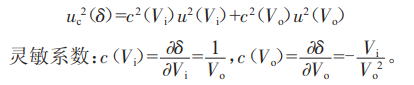 由于各輸入量之間不相關(guān),即r(Vi,Vo)=0,則合成不確定度可以表示為: