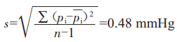 測(cè)量平均值為38.19mmHg,利用貝塞爾公式可得單次測(cè)量結(jié)果的實(shí)驗(yàn)標(biāo)準(zhǔn)差為: