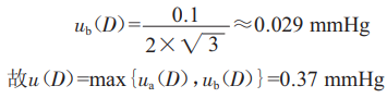 (2)監(jiān)護(hù)儀分辨率不確定度。儀器的最小分辨率刻度為1mmHg,屬均勻分布,采用B類方法進(jìn)行評(píng)定:
