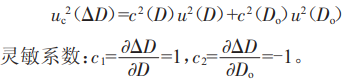 由于各輸入量之間不相關(guān),即r(D,Do)=0,則合成不確定度可以表示為: