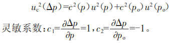 由于各輸入量之間不相關(guān),即r(p,po)=0,則合成不確定度可以表示為: