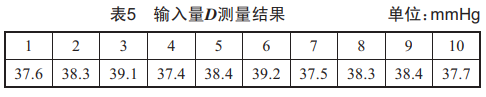 測(cè)量重復(fù)性可以通過重復(fù)測(cè)量得到,采用A類方法進(jìn)行評(píng)定。按檢定規(guī)程,采用二氧化碳濃度為5.0%體積百分比的標(biāo)準(zhǔn)氣體(對(duì)應(yīng)38mmHg,大氣壓為760mmHg的條件下)進(jìn)行檢定,呼吸率測(cè)量點(diǎn)為20次/min,記錄監(jiān)護(hù)儀顯示的呼末二氧化碳濃度,在重復(fù)性條件下進(jìn)行10次測(cè)量,測(cè)量結(jié)果如表5所示。