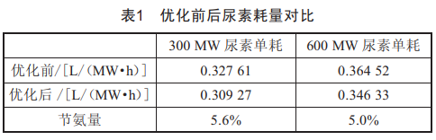 優(yōu)化實(shí)施后,如表1所示,單位發(fā)電量尿素耗量比優(yōu)化前在300MM和600MM負(fù)荷時(shí)分別下降5w6.和5w0.。