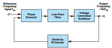 PLL是一種反饋系統(tǒng),用于調(diào)節(jié)或鎖定壓控振蕩器(VCO)輸出與輸入基準信號之間的相位差,如圖1所示。VCO是一種振蕩器,其輸出頻率是某個輸入控制電壓的函數(shù)。通常,當VCO用于PLL等反饋環(huán)路時,電壓頻率轉(zhuǎn)換函數(shù)必須至少是單調(diào)的。VCO的一個特例是電壓頻率轉(zhuǎn)換器(VFC),其電壓/頻率特性是線性的。反饋環(huán)路中的分頻器的分頻系數(shù)N一般是整數(shù),包括1,若為1則與沒有分頻器或從VCO輸出直連鑒相器輸入的情況相同。