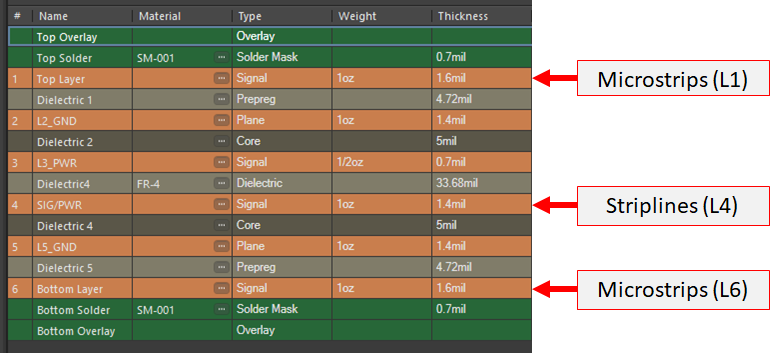 眾所周知,微帶線、帶狀線或共面布置的層厚會(huì)影響數(shù)字或模擬信號(hào)的損耗。明智地選擇需要支持高速/高頻信號(hào)的信號(hào)層中的電介質(zhì)厚度可以解決上述損耗的一個(gè)方面。此外,為外露走線選擇合適的材料和電鍍材料可以降低高頻損耗,例如在需要精確信號(hào)完整性的毫米波設(shè)計(jì)中??傊@些步驟有助于確保信號(hào)在路由到互連末端時(shí)經(jīng)歷低損耗。