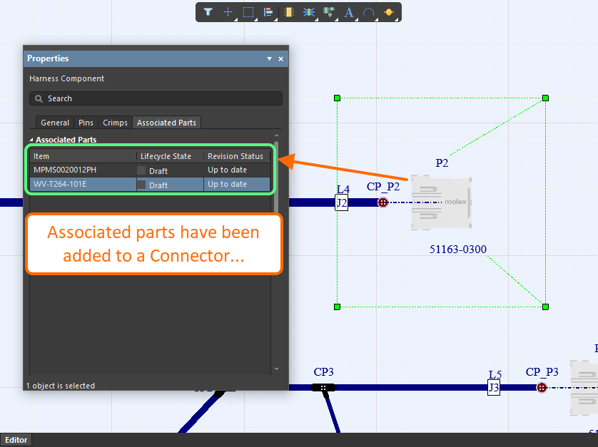 在當(dāng)前版本中,為了防止出現(xiàn)圖形錯誤陳述,當(dāng)將線束線纜、絞線和屏蔽等對象放入Harness Wiring Diagram(*.WirDoc)時,上述對象將使用固定縱橫比。此外,為了避免將這些對象轉(zhuǎn)換為圓點,其最小尺寸將根據(jù)文檔的當(dāng)前捕捉柵格值進(jìn)行確定。如需了解更多信息,請參閱Defining the Harness Wiring Diagram - Cables 和 Defining the Harness Wiring Diagram - Twists and Shields頁面。