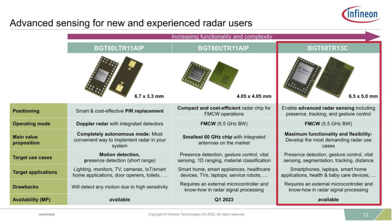 憑借著英飛凌豐富的產(chǎn)品陣營,CSK也為不同類型量產(chǎn)客戶提供了很高的選型靈活性??蛻粼贑SK上對自己的設(shè)計進行測試之后,可以針對量產(chǎn)時具體性能的需求,再進行具體型號的選擇。例如如果對于檢測精度要求較低,雷達還可以選擇一發(fā)一收的型號;對于計算和連接性能有更低或更高的要求,還可以選擇PSoC64或者更低的型號。因為都是同一家族同一平臺的產(chǎn)品,采用ModusToolbox進行代碼遷移也都變得非常簡單。