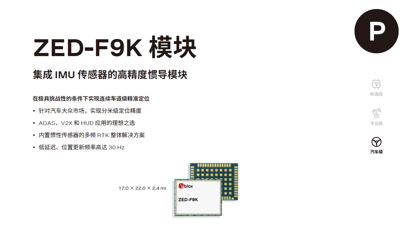 你可能不知道,在去年中國市場上熱議度極高的理想L9車型上,就搭載了u-blox的定位模塊——“ZED-F9K”。ZED-F9K是u-blox面向ADAS應(yīng)用推出的車規(guī)級GNSS定位模塊,在理想L9的AD-MAX和AD-PRO輔助駕駛系統(tǒng)中實現(xiàn)定位功能,助力理想L9實現(xiàn)了全場景導(dǎo)航輔助駕駛功能。