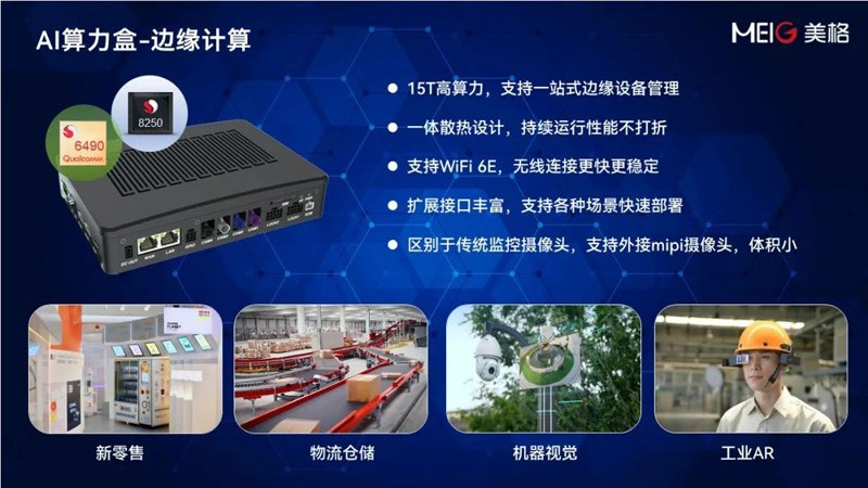 美格智能針對邊緣計(jì)算領(lǐng)域打造的AI算力盒子,高達(dá)15Tops AI算力,支持一站式邊緣設(shè)備管理,支持Wi-Fi 6E,擁有豐富擴(kuò)展接口,便于各種場景下快速部署。 采用一體散熱設(shè)計(jì),長時間持續(xù)運(yùn)營的狀態(tài)下性能不打折,適用于新零售、物流倉儲、機(jī)器視覺、工業(yè)AR等領(lǐng)域。