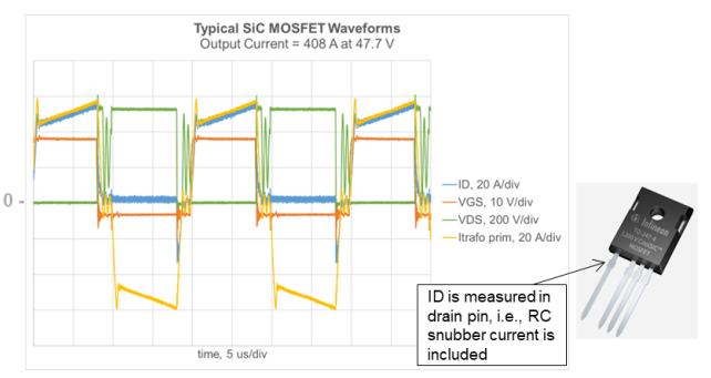圖4:焊機電源逆變器工作期間的典型SiC MOSFET波形