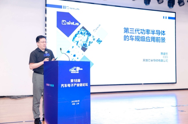 天狼芯半導(dǎo)體CEO曾健忠介紹該公司的第三代半導(dǎo)體產(chǎn)品及其車規(guī)級應(yīng)用