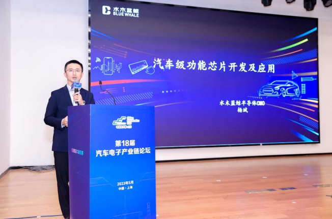 上海水木藍鯨半導(dǎo)體首席市場官楊斌展示的汽車功能芯片及其應(yīng)用