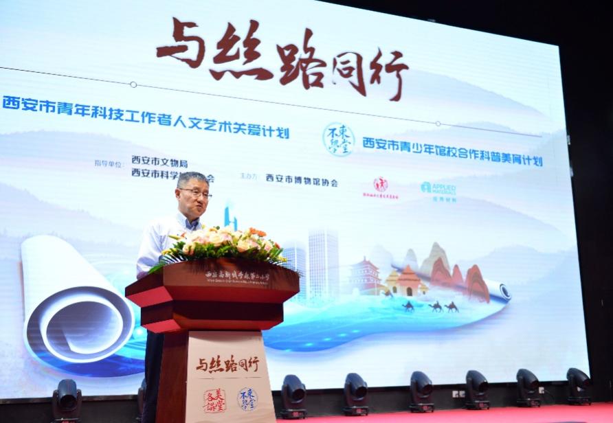 2023年5月27日—西安,伴隨著2023年西安市科技活動周的舉辦,由陜西婦女兒童發(fā)展基金會、應(yīng)用材料中國公司聯(lián)合發(fā)起的“與絲路同行·應(yīng)用材料公司各美講堂”(以下簡稱“各美講堂”)2023年度系列人文藝術(shù)公益講座于今日在西安高新錢學(xué)森第二小學(xué)迎來本年度啟幕儀式暨首場大型公眾講座?,F(xiàn)場,西北大學(xué)教授、博士生導(dǎo)師、西北大學(xué)中亞考古隊隊長,絲綢之路考古合作研究中心首席科學(xué)家王建新老師擔任開幕場主講人,并以《追尋張騫的足跡——絲綢之路與東西方文明》為主題拉開了2023年“各美講堂”的序幕。同時,在西安市科學(xué)技術(shù)協(xié)會、西安市博物館協(xié)會的大力支持下,2023年“與絲路同行·應(yīng)用材料公司不東學(xué)堂”公益項目(以下簡稱“不東學(xué)堂”)也正式宣告啟動?!安粬|學(xué)堂”將聚焦館校共建合作,為廣大青少年學(xué)生的課堂生活帶來形式多樣、內(nèi)容豐富的絲路科技主題博物館課程資源。