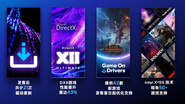 Arc A系列顯卡發(fā)布以來,官方已經(jīng)先后發(fā)布21個驅(qū)動版本更新,為多達(dá)42款游戲提供發(fā)售首日支持。