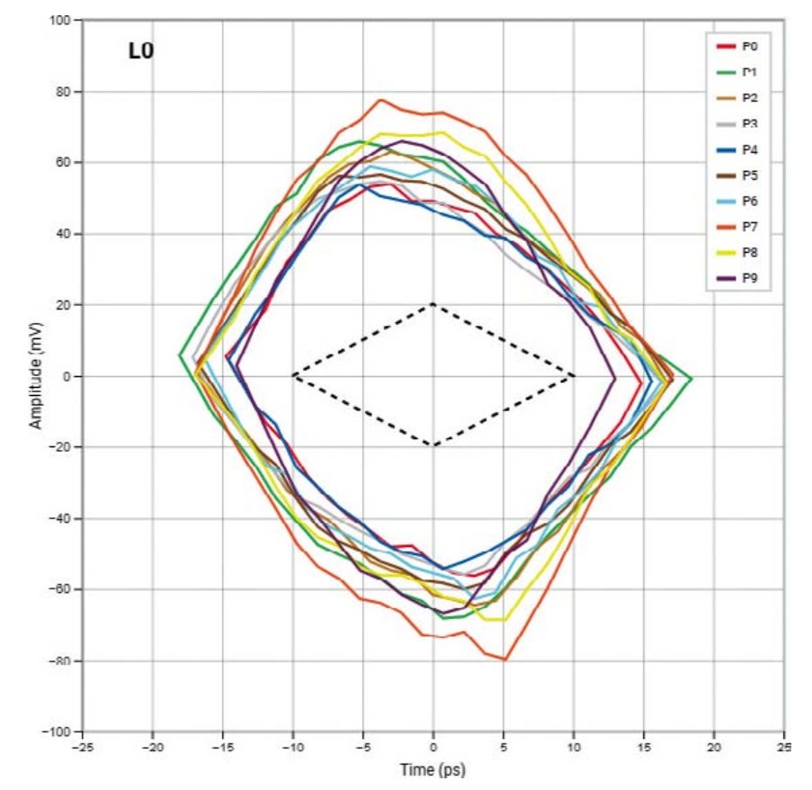 系統(tǒng)對(duì)于發(fā)射器測(cè)試提供了兩個(gè)重要的數(shù)據(jù):可以在容限測(cè)試儀接收器測(cè)量的每個(gè)通道/預(yù)設(shè)組合的眼圖。容限測(cè)試儀的接收器訓(xùn)練值,用于充分張開眼圖。