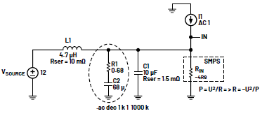 如果該電阻低于SMPS負(fù)電阻的絕對(duì)值,則正電阻處于主導(dǎo),且輸入濾波器網(wǎng)絡(luò)將保持穩(wěn)定。