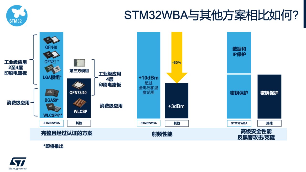 在安全性方面,STM32WBA基于ArmTrustZone和ST自己的專利安全技術(shù),達(dá)到了最高等級(jí)的SESIP和PSA L3認(rèn)證目標(biāo)。