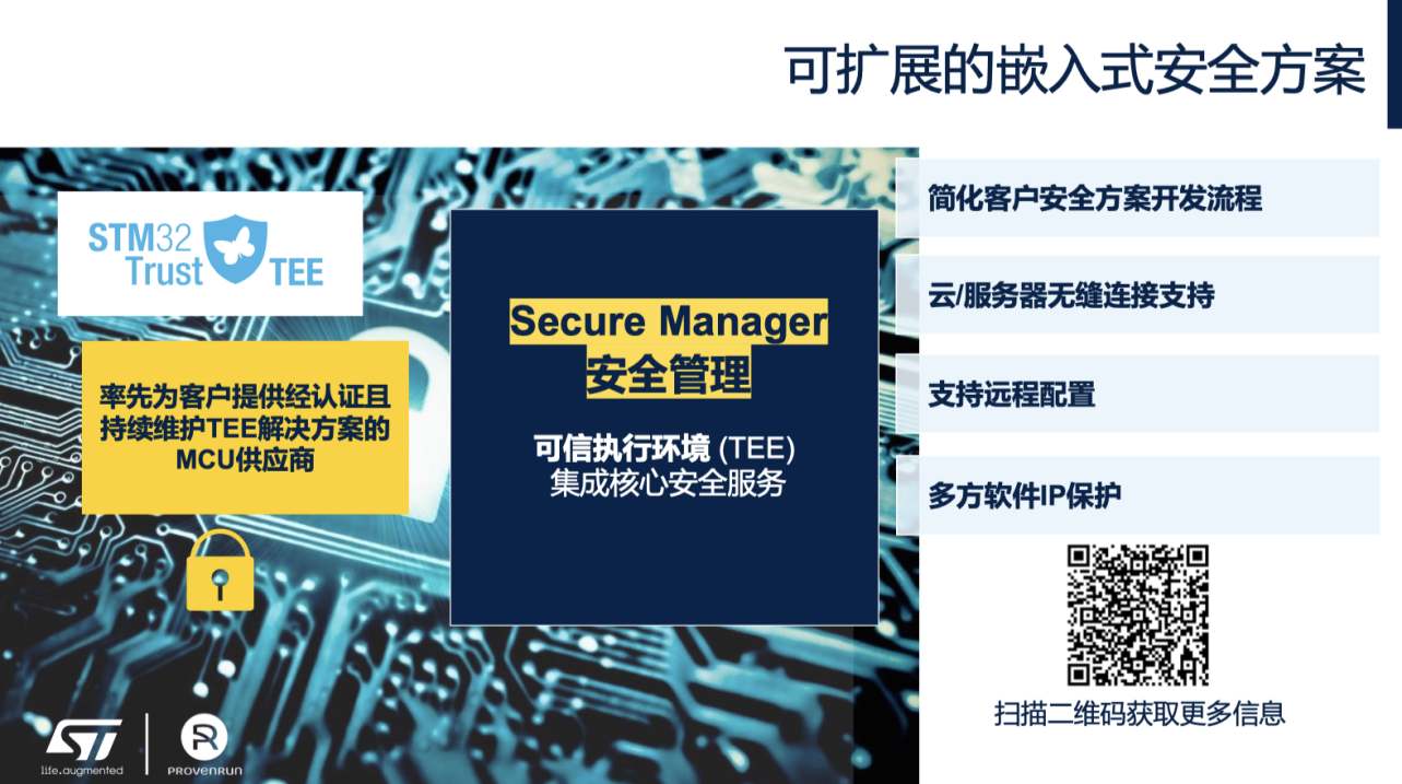 針對(duì)安全解決方案,ST提供了諸多硬件IP和相應(yīng)的加密算法,包括信息本身的一些加密技術(shù)。像STM32WBA和STM32MP1等產(chǎn)品,都已經(jīng)達(dá)到了自高的PSA Level3和SESIP Level3的安全目標(biāo)認(rèn)證,從底層的硬件層面為客戶的應(yīng)用提高了很好的安全基礎(chǔ)。