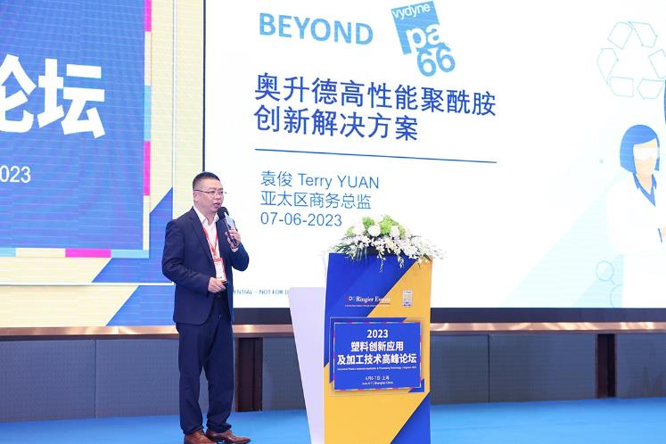 ▲奧升德亞太區(qū)工程材料商務(wù)總監(jiān)袁?。═erry Yuan)發(fā)表主題演講
