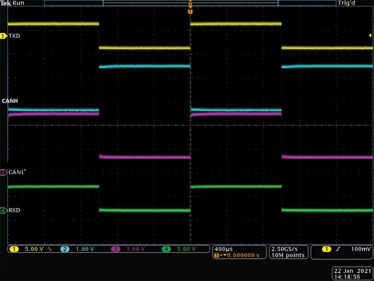 圖5.MAX33012E CAN數(shù)據(jù)傳輸。