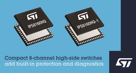 2023 年 6 月 14 日,中國 —— 意法半導體的 IPS8160HQ 和 IPS8160HQ-1高邊開關具有八路功率輸入輸出,采用尺寸緊湊的QFN48L封裝,還附加很多安保診斷功能。
