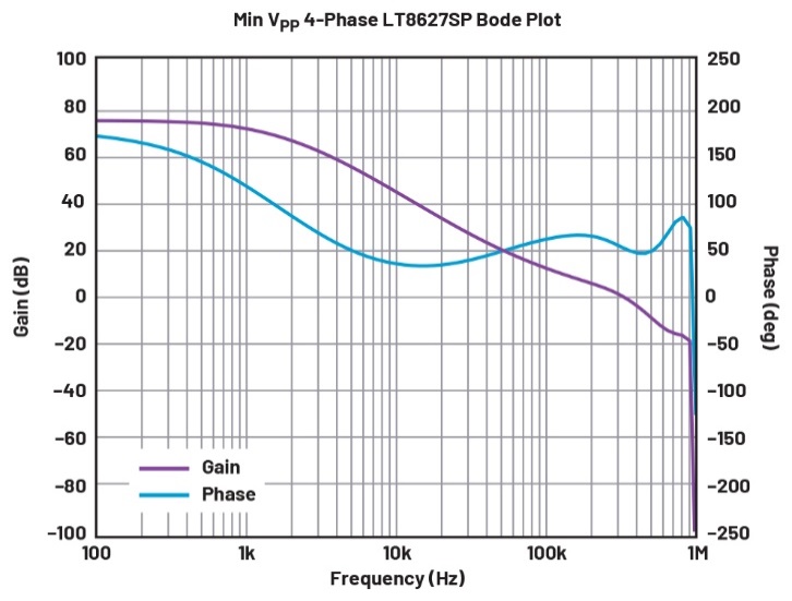 圖2.50A/四相LT8627SP和12A/單相LT8627SP的伯德圖比較。