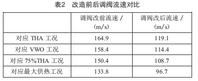 由表2可知,原設(shè)計(jì)低壓汽源調(diào)門為8個(gè)小85的蒜頭閥,過流速度超過規(guī)范值,閥門節(jié)流損失大。改造采用8個(gè)小100的球形閥,過流速度比改造前降低了27.7%,減少過流閥門損失約1%,汽機(jī)效率提升約1%。