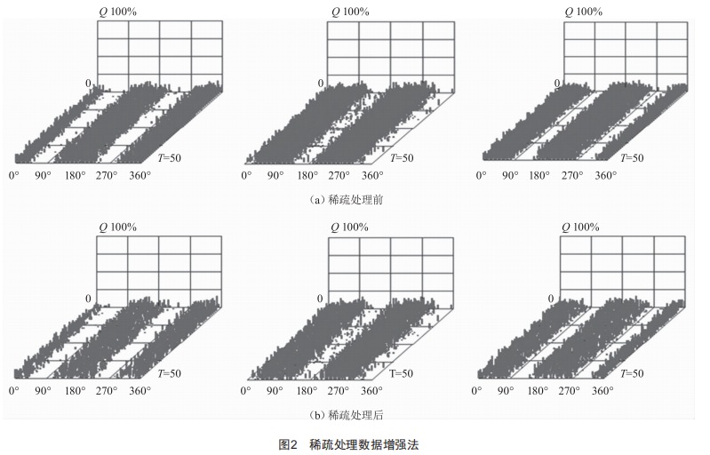 同時,本文還采用了稀疏處理法來進(jìn)行數(shù)據(jù)增強(qiáng),如圖2所示。在真實(shí)缺陷數(shù)據(jù)的基礎(chǔ)上,隨機(jī)去除部分脈沖,生成新的樣本。依此種辦法生成的圖譜和原圖譜相似但不相同,又同樣具備缺陷特征。稀疏處理方法是補(bǔ)充原有樣本集的優(yōu)秀手段。