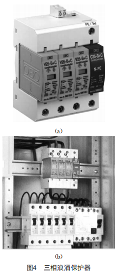 因此,應(yīng)該做好電梯自身防浪涌設(shè)計(jì),落實(shí)到位,有備無(wú)患。結(jié)合電梯所在的建筑物,將電梯納入整個(gè)建筑物的防雷體系中,形成多層次防護(hù),逐級(jí)削弱浪涌沖擊,從而提高電梯的浪涌抗擾度。圖4所示為在電源端加裝的浪涌保護(hù)器。