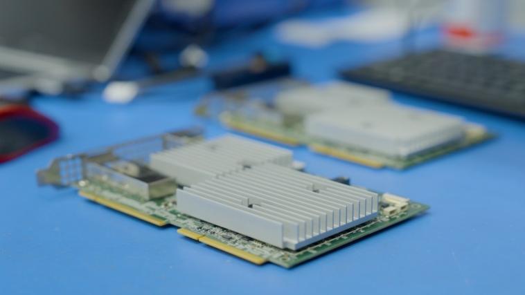 在模擬數(shù)據(jù)中心服務(wù)器環(huán)境的測(cè)試設(shè)備上安裝Nitro芯片