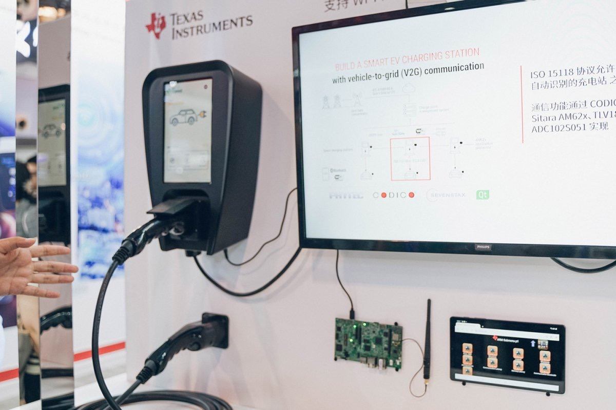 在此次展會(huì)上,TI展示了一個(gè)電動(dòng)汽車的充電系統(tǒng)的設(shè)計(jì)實(shí)例,該方案中選擇了一個(gè)AM62x + CC3301,讓充電樁實(shí)現(xiàn)了中央電網(wǎng)系統(tǒng)接入功能。用戶就可以通過(guò)手機(jī)等設(shè)備實(shí)時(shí)監(jiān)控用電情況,而對(duì)電力運(yùn)維公司而言,可以隨時(shí)檢測(cè)電網(wǎng)負(fù)載,調(diào)整電網(wǎng)供應(yīng)。