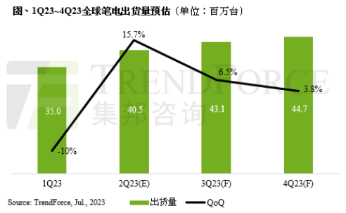TrendForce集邦咨詢表示,全球筆電出貨量大致已于第一季觸底,第二季可期待較明顯的季度成長,然消費級距擴大可能壓抑市場動能,預估第三季起成長幅度會開始趨緩。由于經(jīng)濟持續(xù)低迷,2023全年筆電市場應(yīng)仍處于盤整期,整體出貨量預估約1.63億臺,年減12.2%。