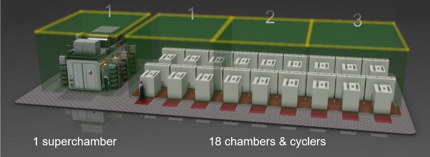 在是德科技和Proventia合作的項(xiàng)目中,合作開發(fā)人員發(fā)現(xiàn)對(duì)于一個(gè)需要18個(gè)傳統(tǒng)循環(huán)器及恒溫箱體的質(zhì)量閘而言,超級(jí)測(cè)試箱在提供同等通道容量的前提下,所占空間僅為三分之一(見圖4)。