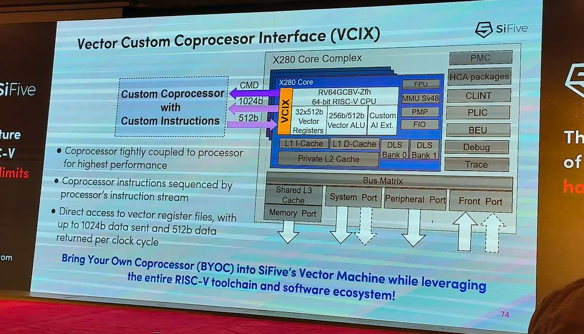 另一個(gè)值得關(guān)注的是X280,這一產(chǎn)品已經(jīng)證明了其在AI領(lǐng)域的實(shí)力。谷歌的TPU自己做了10年,其中向量處理器做了8年;但現(xiàn)在當(dāng)他們選擇要轉(zhuǎn)到RISC-V上面,他們直接選擇了SiFive的X280。