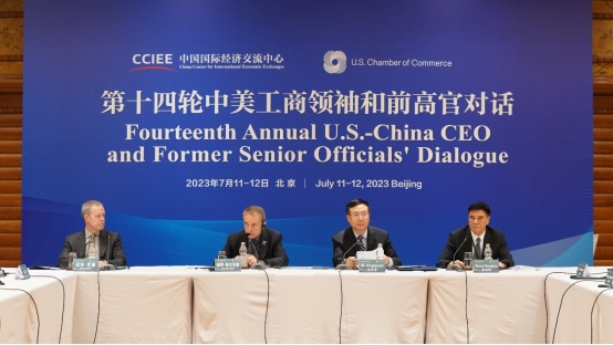 據(jù)中國國際經(jīng)濟交流中心官網(wǎng)消息,7月11-12日,由中國國際經(jīng)濟交流中心和美國全國商會聯(lián)合主辦的第十四輪中美工商領(lǐng)袖和前高官對話在北京舉行。雙方參會代表圍繞全球經(jīng)濟形勢及中美經(jīng)貿(mào)關(guān)系前景、數(shù)字經(jīng)濟、可持續(xù)發(fā)展和醫(yī)療健康等議題展開了深入討論和交流。作為美國全國商會中國中心顧問委員會主席,基辛格等20余位政商學(xué)界代表出席對話。