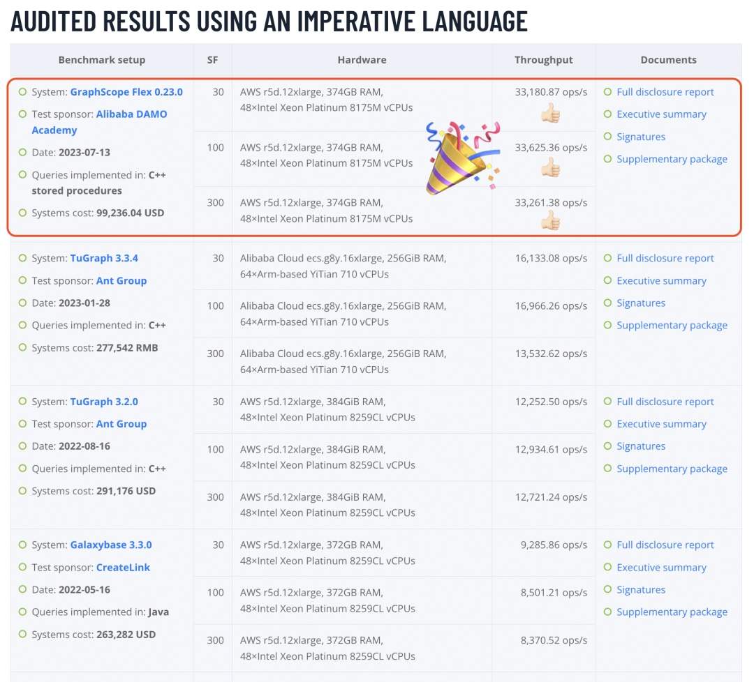 7月21日,國際權(quán)威圖基準(zhǔn)測評“LDBC SNB Interactive” 榜單更新中出現(xiàn)關(guān)鍵突破:阿里云開源圖計(jì)算引擎 GraphScope 登頂并打破榜單歷史紀(jì)錄,其單節(jié)點(diǎn)執(zhí)行圖數(shù)據(jù)庫查詢的吞吐率超過 30000 QPS,性能達(dá)此前紀(jì)錄保持者2倍。