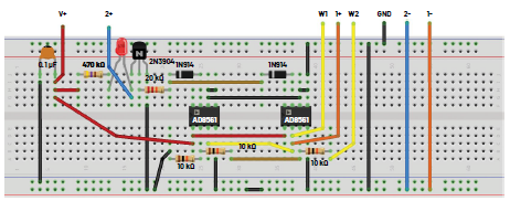 為窗口比較器電路構(gòu)建以下試驗(yàn)板電路。