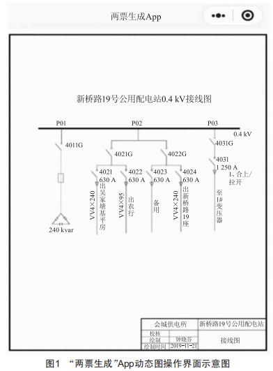 由表1可以看出,操作現(xiàn)場(chǎng)利用"兩票生成"App直接進(jìn)行出票和遠(yuǎn)程審核,在時(shí)間和勞動(dòng)強(qiáng)度上均有顯著優(yōu)勢(shì)。"兩票生成"App生成的操作票內(nèi)容是根據(jù)相關(guān)的電氣操作導(dǎo)則提前錄入的,與日常電氣操作導(dǎo)則符合并保持完全一致,不僅可以提高日常作業(yè)的工作效率,降低施工人員的勞動(dòng)強(qiáng)度,還消除了紙質(zhì)票面有關(guān)組織安全措施的違章安全隱患。除此之外,理論上該系統(tǒng)的動(dòng)態(tài)圖還可通過在電氣設(shè)備端加裝電感傳感器實(shí)現(xiàn)實(shí)時(shí)的遠(yuǎn)程自設(shè),即根據(jù)電氣現(xiàn)場(chǎng)設(shè)備開關(guān)狀態(tài)自動(dòng)動(dòng)態(tài)設(shè)定App內(nèi)符合現(xiàn)場(chǎng)實(shí)際狀態(tài)的動(dòng)態(tài)圖,具體有待下一步開發(fā)改進(jìn)。