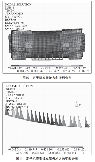 (3)在重力作用下,定子在天地方向變形分布如圖10、圖11所示。