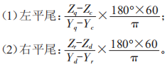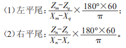 平尾安裝角是水平尾翼弦線與機身軸線之間的夾角。測量水平尾翼前后梁與外側(cè)平尾隔框交點的坐標數(shù)據(jù),按照下式計算得到平尾弦線與機身X軸線之間的夾角。