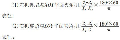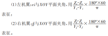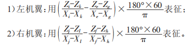(2)機身的扭曲變形:機身的扭曲變形是對機身是否存在扭轉(zhuǎn)形變的評估。利用Fs228.68左右對稱的兩點的坐標,計算其連線與X0y平面的夾角得出機身的扭