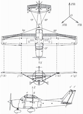 4)為便于測量以減少誤差,機翼上選點均在機翼下表面,水平尾翼選點均在尾翼上表面。
