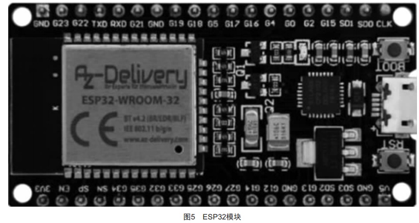 該傾角測量系統(tǒng)主機端基于ESP32單片機,如圖5所示,它是一款集成w6-F6功能的微控制器,擁有強大的性能,可以用來開發(fā)復(fù)雜的應(yīng)用,內(nèi)置32位雙核處理器,最高頻率為240MHz。ESP32具有性能強大、響應(yīng)速度快、功耗低等優(yōu)勢,除此之外,自帶w6-F6和藍牙功能,配置充電管理、OLED顯示,采用4層PCB、元件堆疊等方案使體積最小化,盡可能減輕對操作者精確操作的影響。