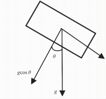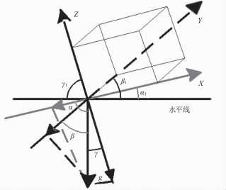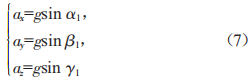 假定質(zhì)量塊沒有受到其他外力的作用,僅受重力作用,其在空間三個坐標上產(chǎn)生由重力分力引起的加速度分量,如圖3所示。