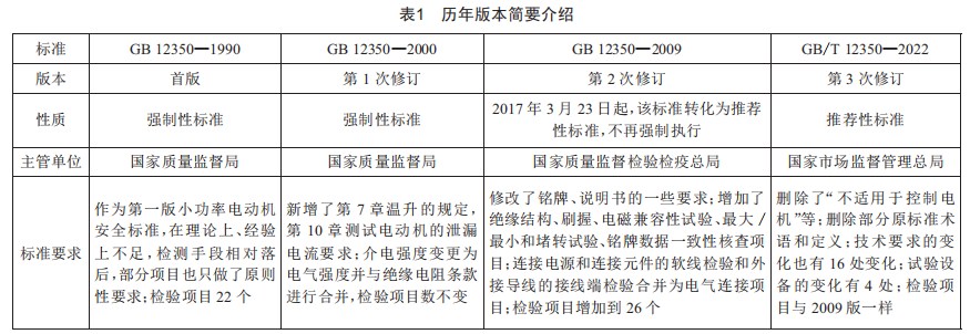 從1990年8月1日實施第一版《小功率電動機的安全要求》標(biāo)準后,這次是第3次修訂,每一次修訂時在標(biāo)準性質(zhì)、技術(shù)項目上都有不同的變化,如表1所示。