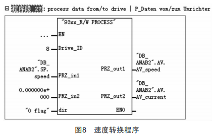 通過以上分析判斷及實際測試,采用如圖8所示的編程思路[4]:采集需要的轉(zhuǎn)速變量二編輯程序二程序調(diào)用該功能塊二運行。運行過程中卷徑測量通過程序內(nèi)部計算,將開卷機卷徑的誤差控制在3mm范圍以內(nèi),提高了連續(xù)線退火機組開卷卷徑的精度,消除了因卷徑誤差問題而造成的產(chǎn)品缺陷。