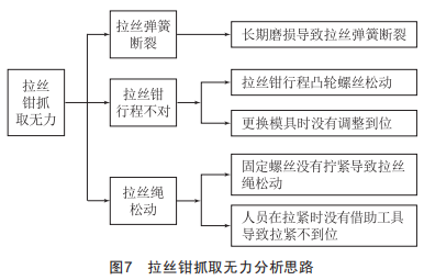 故障現(xiàn)象:拉絲鉗抓取無力導(dǎo)致封口出現(xiàn)拉不斷的情況。
